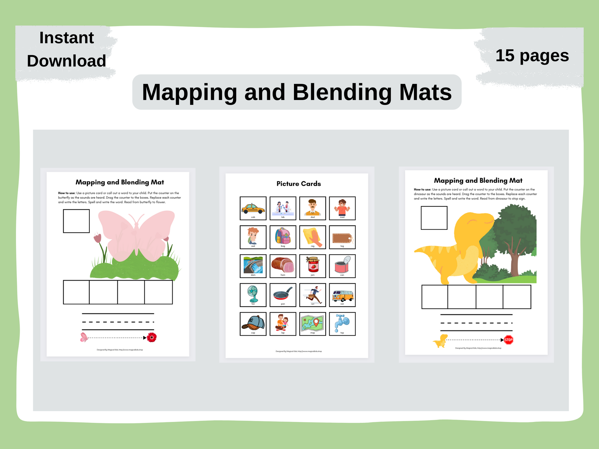 "Mats" - This Mapping and Blending Words Resource is an excellent tool for enhancing your child's reading skills. With 8 captivating themes including christmas, winter, dinosaur, ocean, space, Easter, butterfly, and ladybug, your child will stay engaged and excited to learn. Featuring 164 picture cards covering CVC, digraphs, and blends, each fully decodable, there's no room for guessing games. Simply slide the cards into plastic sleeves, and your phonics morning basket is ready to go!