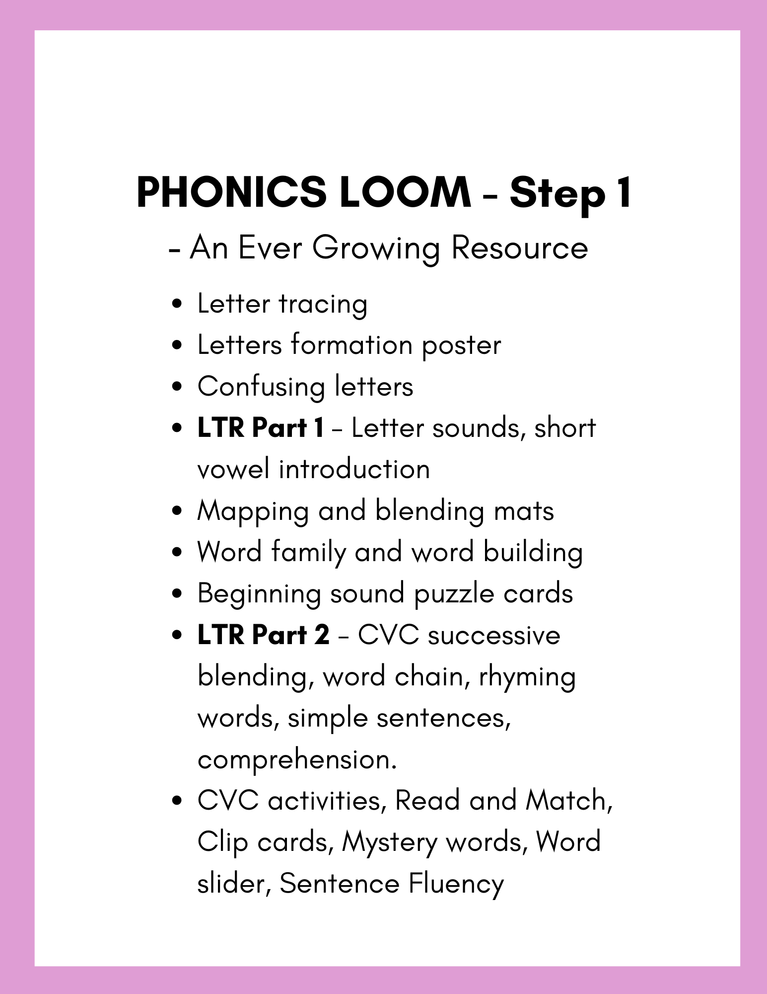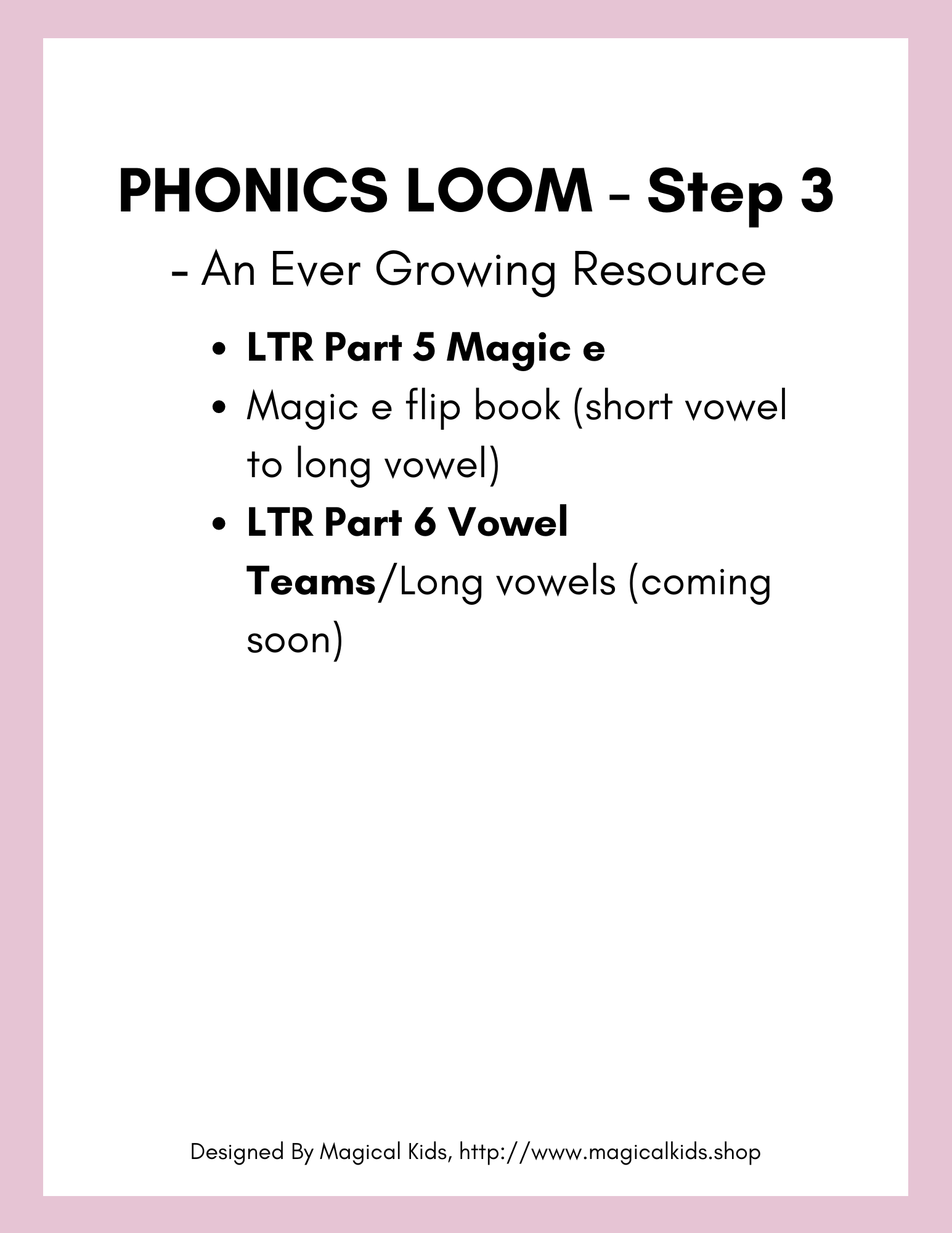 ✅ Step-by-Step Learning – Covers letter sounds, CVC words, digraphs, blends, magic e, long vowels & more!